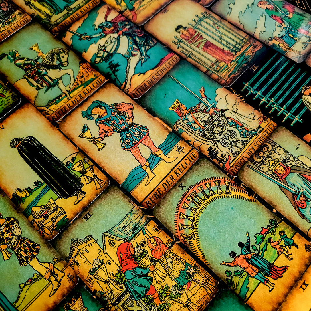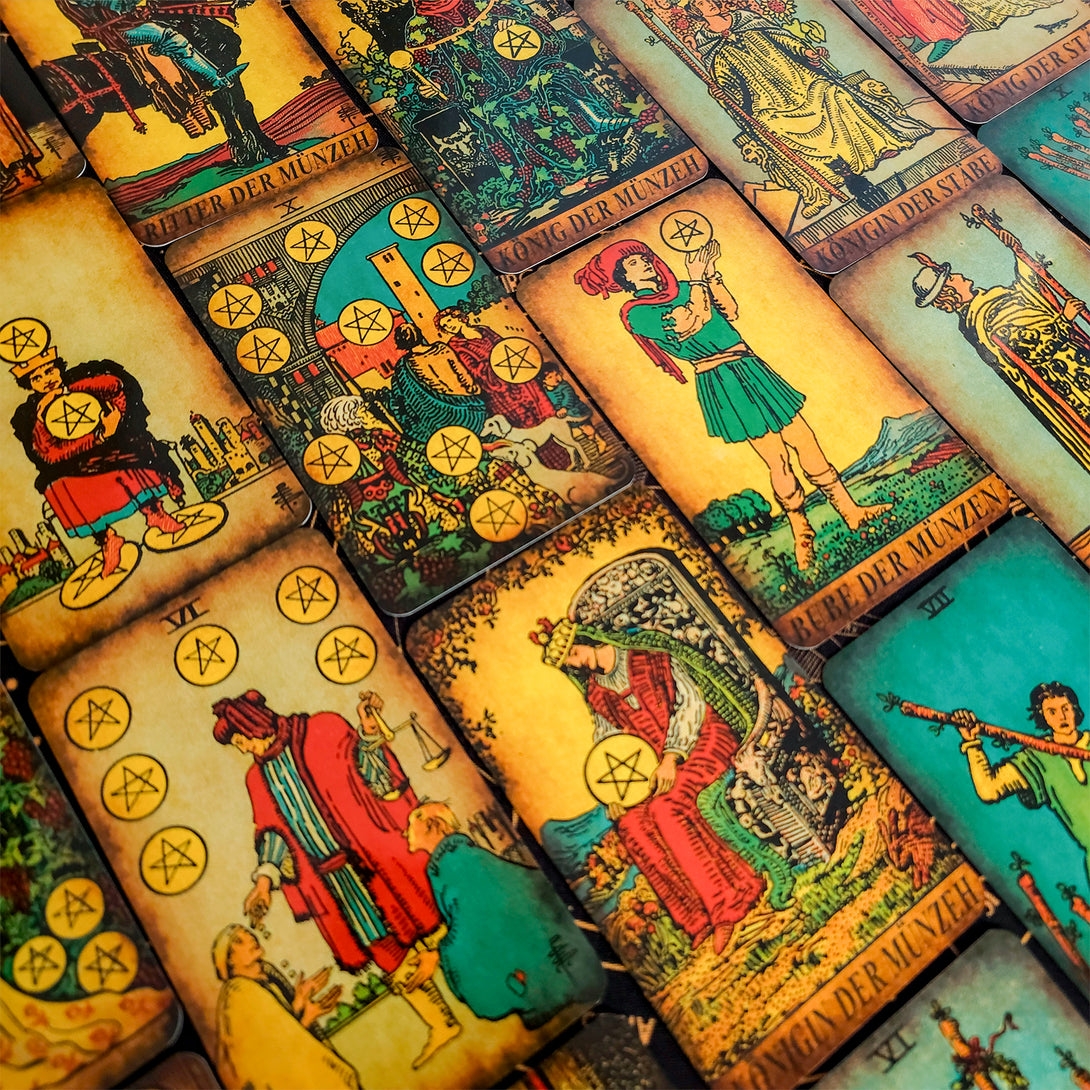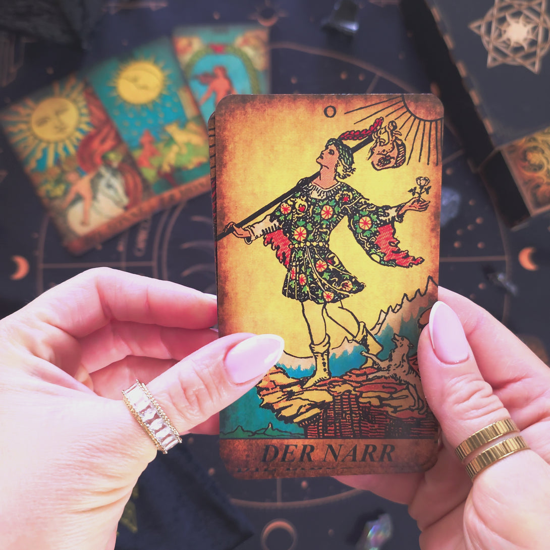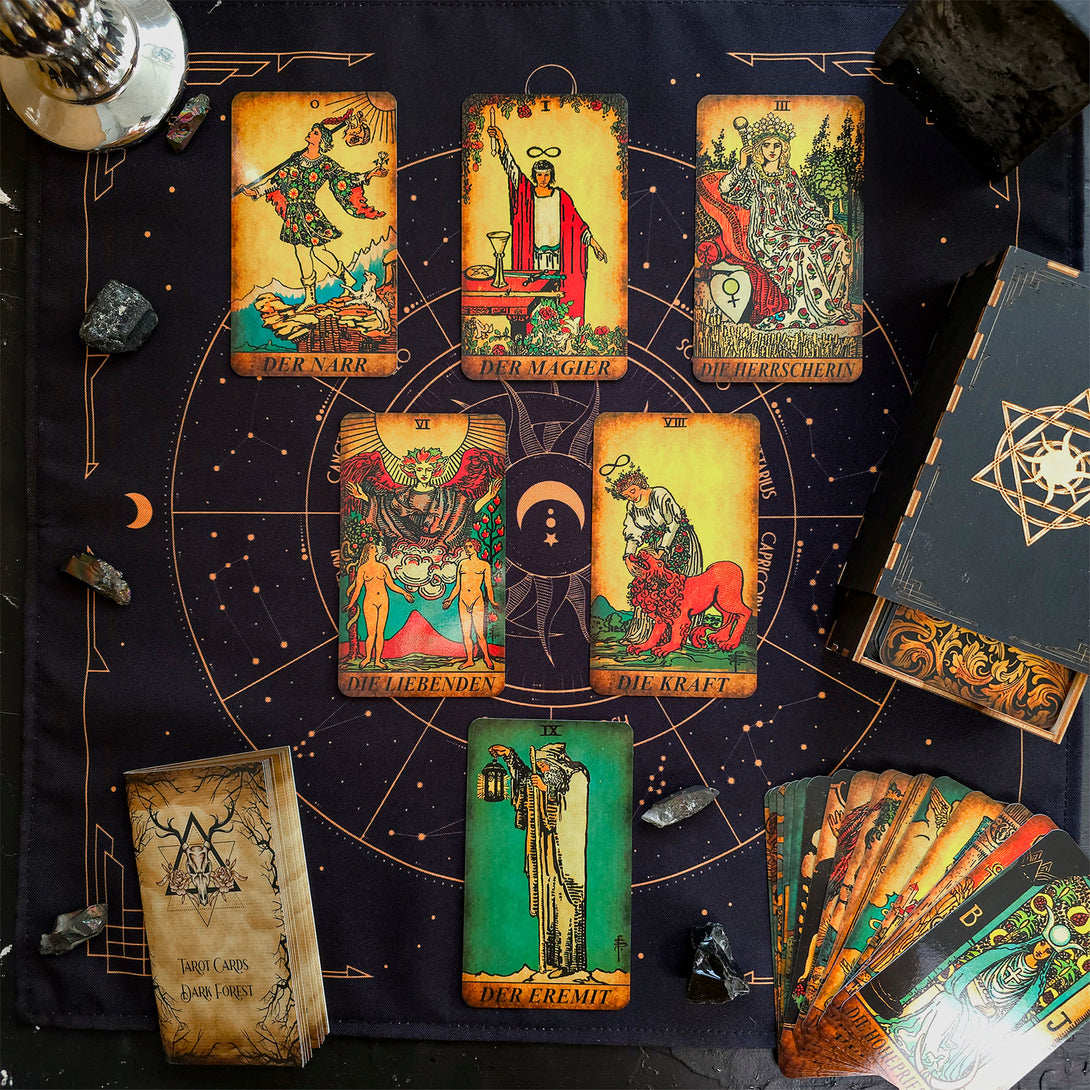 We recommend starting with our classic Rider-Waite-style deck. It’s the go-to choice for beginners and comes with everything you need to get started. View the deck